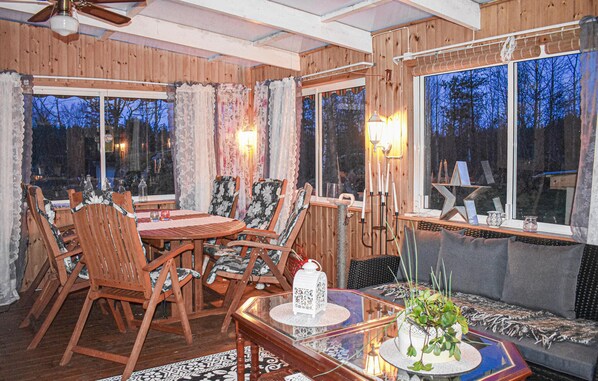 Mysigt semesterhus vid sjön Sillhövden. Huset har en vacker uteplats och en öppen spis.