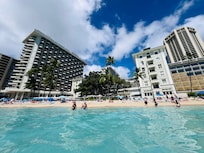 Läge: Bästa läge. Ett av få med direkt access till stranden samtidigt mitt på shoppinggatan Kalakaua Av.