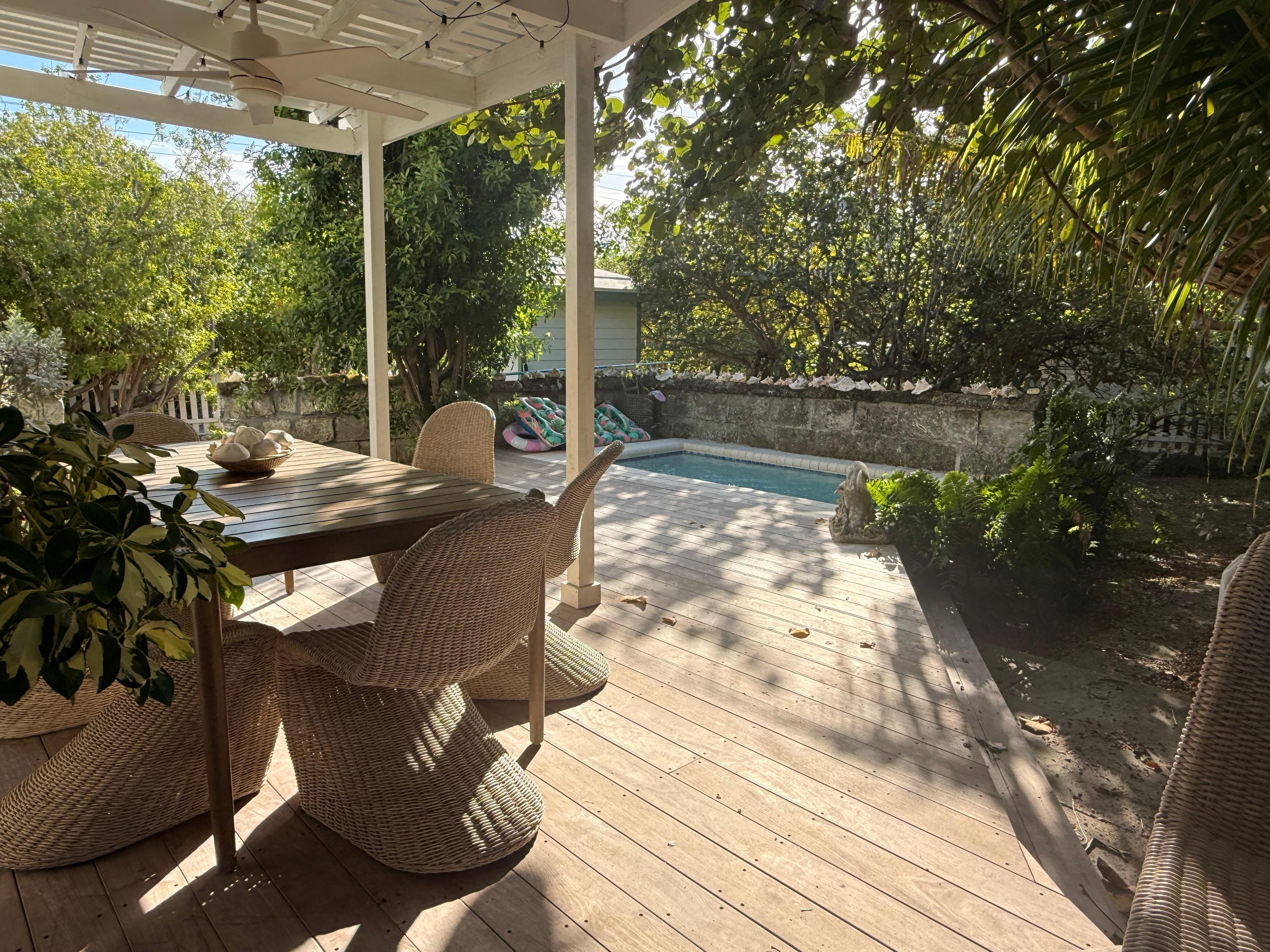 This adorable vintage cottage is designed with high-end furniture and features throughout. Great efforts have been made to provide modern conveniences while respecting the original character and charm. Guests will love the dipping pool nestled in the lush backyard setting. The home is located in a quiet residential neighborhood on the settlement’s north side. Just a short 1-2 blocks stroll from the beach, harbour, shopping, restaurant, bike rentals, and incredible views of the landmark lighthouse.