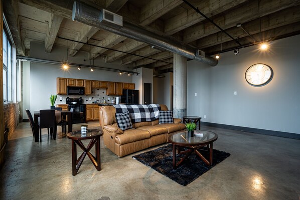 This loft is exactly as shown. I have an absolute passion for industrial styles, so I loved that it was completely brick and cement. It was extremely spacious, and I loved the open floor plan. Through the windows you have a perfect view of the downtown skyline, very beautiful at night when all of the high rises are all lit up. Once the sun starts to set you can see all of the orange and pink hues coming through the city. You can tell that the building was probably an old printing press as there is a wheel used as decoration outside in the courtyard. The only downfall with the building was that since it's so old, and the fact that it's all brick, everything echoes. So at times, you can hear the music coming from neighboring lofts, but it's not to the point of being obnoxious, and you can only hear it if you have the loft completely quiet....and we only ever heard anything during the daytime hours. There is a train track right behind the building and the train runs multiple times a day, but it's really not that loud. I actually loved the fact that you can see working America right out the window. Overall, we loved it!!!