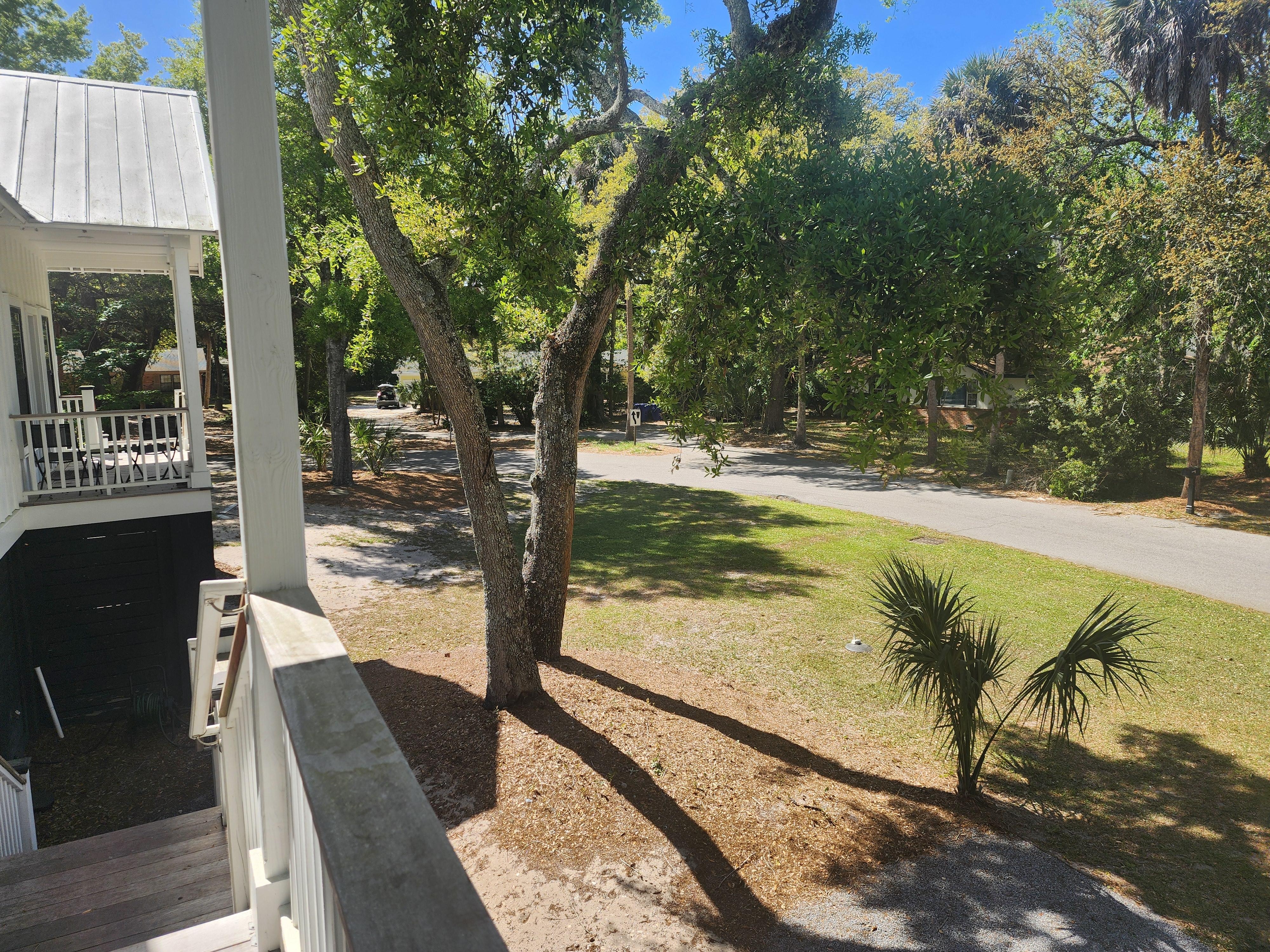 Enjoy morning coffee or evening drinks on the private back patio or one of the three porches overlooking the beautiful live oaks.