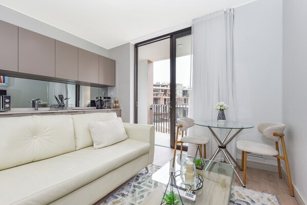 Samtliga gästrum hos One Rosebank | Calm. Luxe. Living. erbjuder detaljer som luftkonditionering, samt extra bekvämligheter såsom värdeförvaringsskåp och matbord.