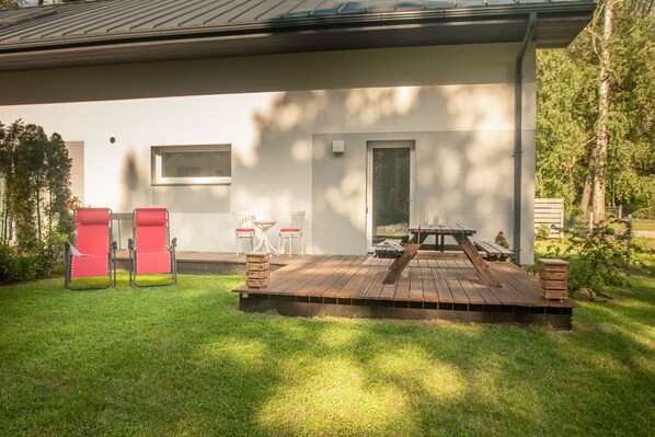Apartment with a cozy terrace and a view of the pine trees