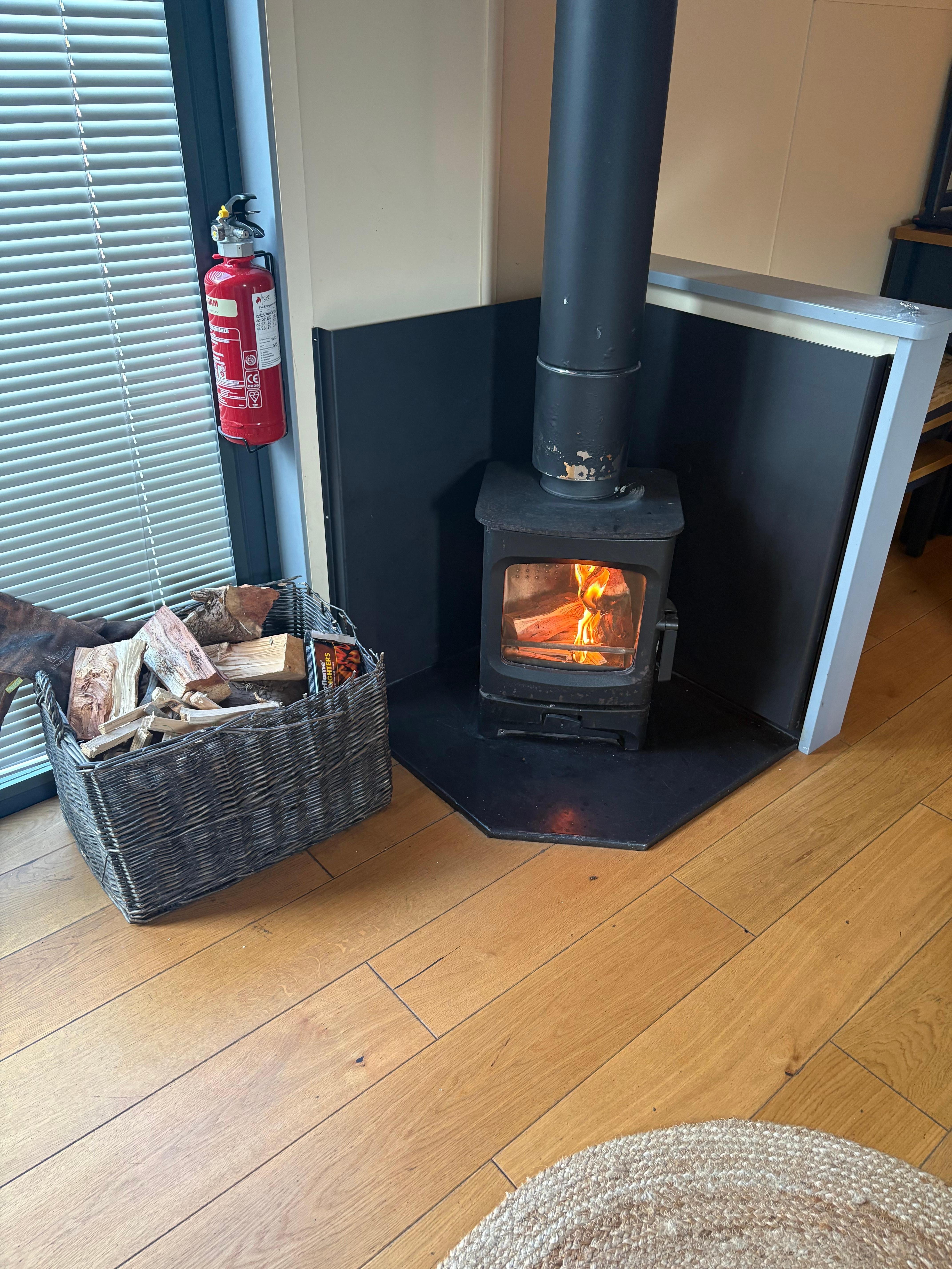 På detta boende finns bland annat följande säkerhetsdetalj: brandsläckare.
