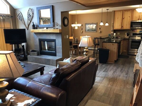 Njut av en av Keystone River Run närmaste fjällbostäder inom gångavstånd till byn. Detta hem ombyggdes och uppdaterades hösten 2018. Detta unika och fashionabla bergshem har en distinkt västra stil. Det är i en anpassad miljö som ger dig den perfekta resan för skidåkning eller andra bergsaktiviteter. Detta hem har en välvd stor rumslayout med stora fönster och skinnmöbler. Du kommer att njuta av vila medan du tittar på människor åka ner på berget. Gasspisen värmer dig på de vinternätter! De två extra stora samhällsbadarna ligger bara 50 meter från ytterdörren! Det tredje sovrummet är ett specialbyggt loft.