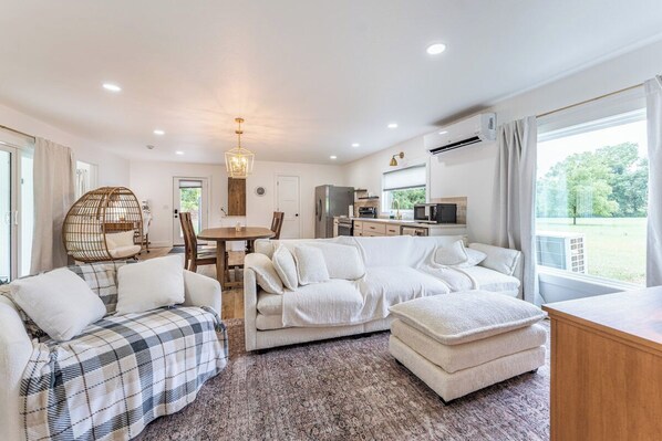Swancrest is a gorgeous little rental in Ohio's Amish country. Both welcoming and modern, you'll find this the perfect place to put up your feet after a day of exploring beautiful Holmes County. There are two bedrooms with queen-sized beds, a spa-like bathroom, a cozy living area, and a fully furnished kitchen. You'll love the massive picture windows and the many other thoughtful and luxurious touches that make this home delightful. Outdoors is a private patio with a fire pit for cozy evenings with loved ones, a luxurious hot tub, and an expansive lawn for games or walks. Book today and enjoy the ambiance of this sparkling clean, perfect-for-you home.