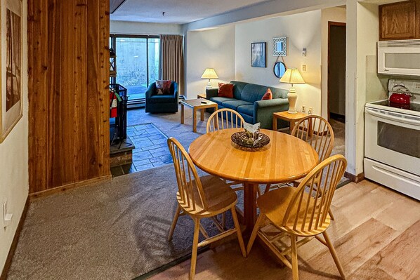 Comfortable mountain gem with pool, mountain views, & indoor parking space