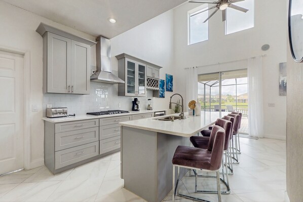 Welcome to your dream vacation home in Kissimmee, FL! This stunning house offers a perfect blend of luxury and comfort, making it an ideal retreat for families and friends. With a breathtaking lake view, you can unwind in the hot tub or take a refreshing dip in the heated pool while soaking up the Florida sun. The spacious patio, complete with comfortable furniture and a gas grill, is perfect for outdoor dining and relaxation.