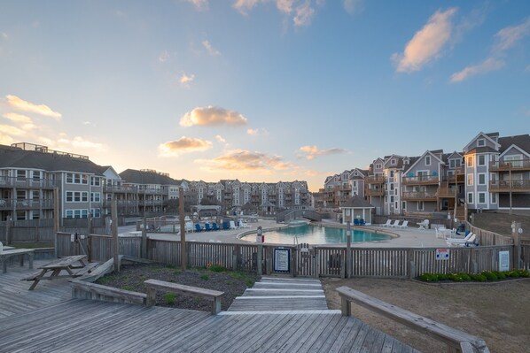 Finns det pool på Oceanfront Condo in Beautiful Duck.?