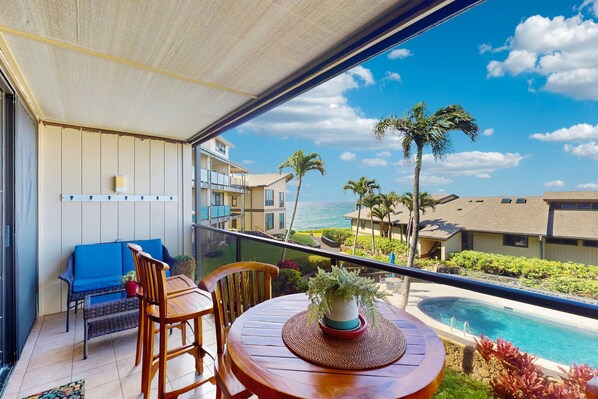 Whether you're sipping a cool drink or settling in for a movie night with the flat-screen TV, the soothing ambiance of the sea is never far away. Slide open the lanai doors and step outside to feel the trade winds on your skin and watch the waves roll in.