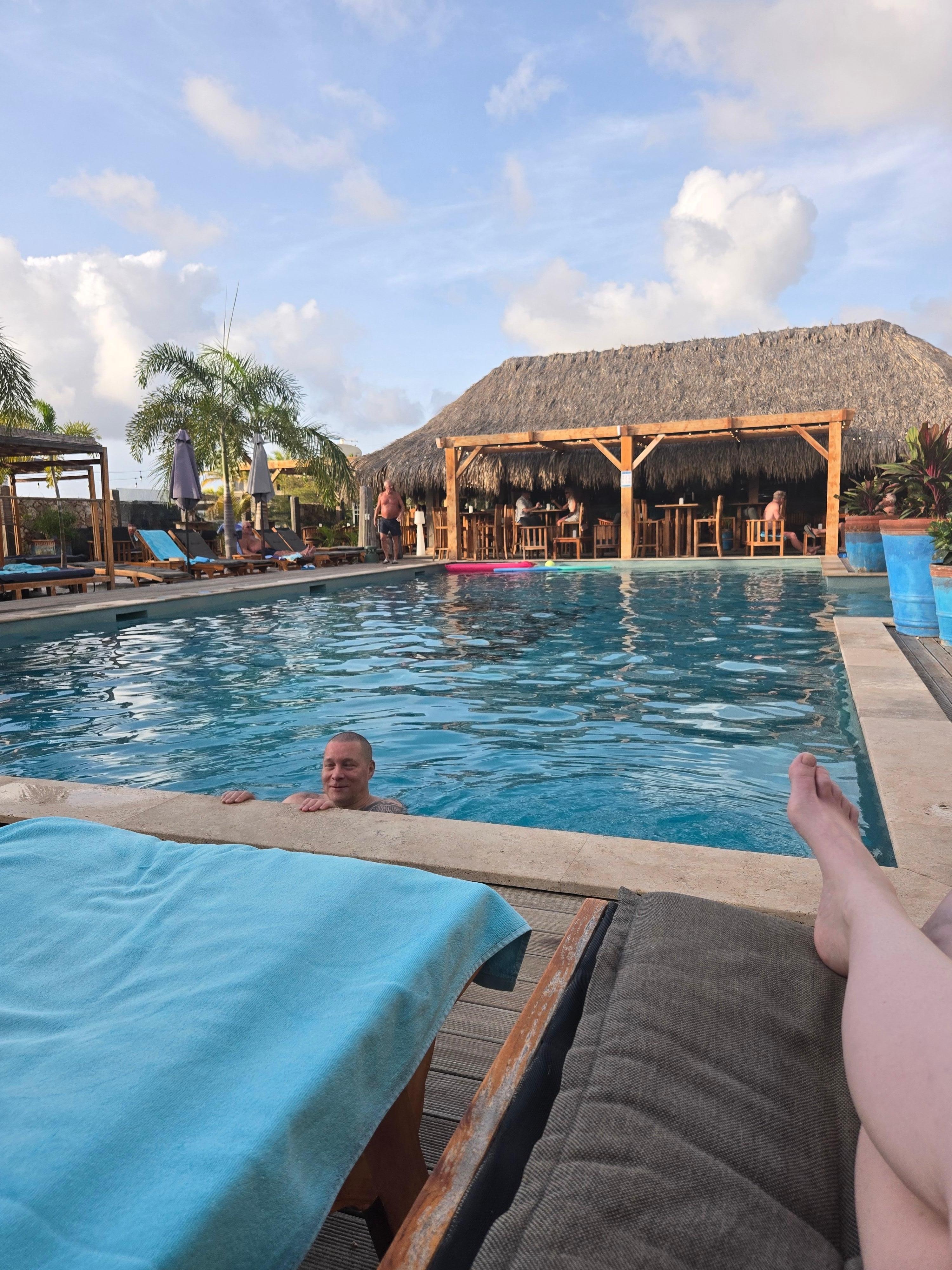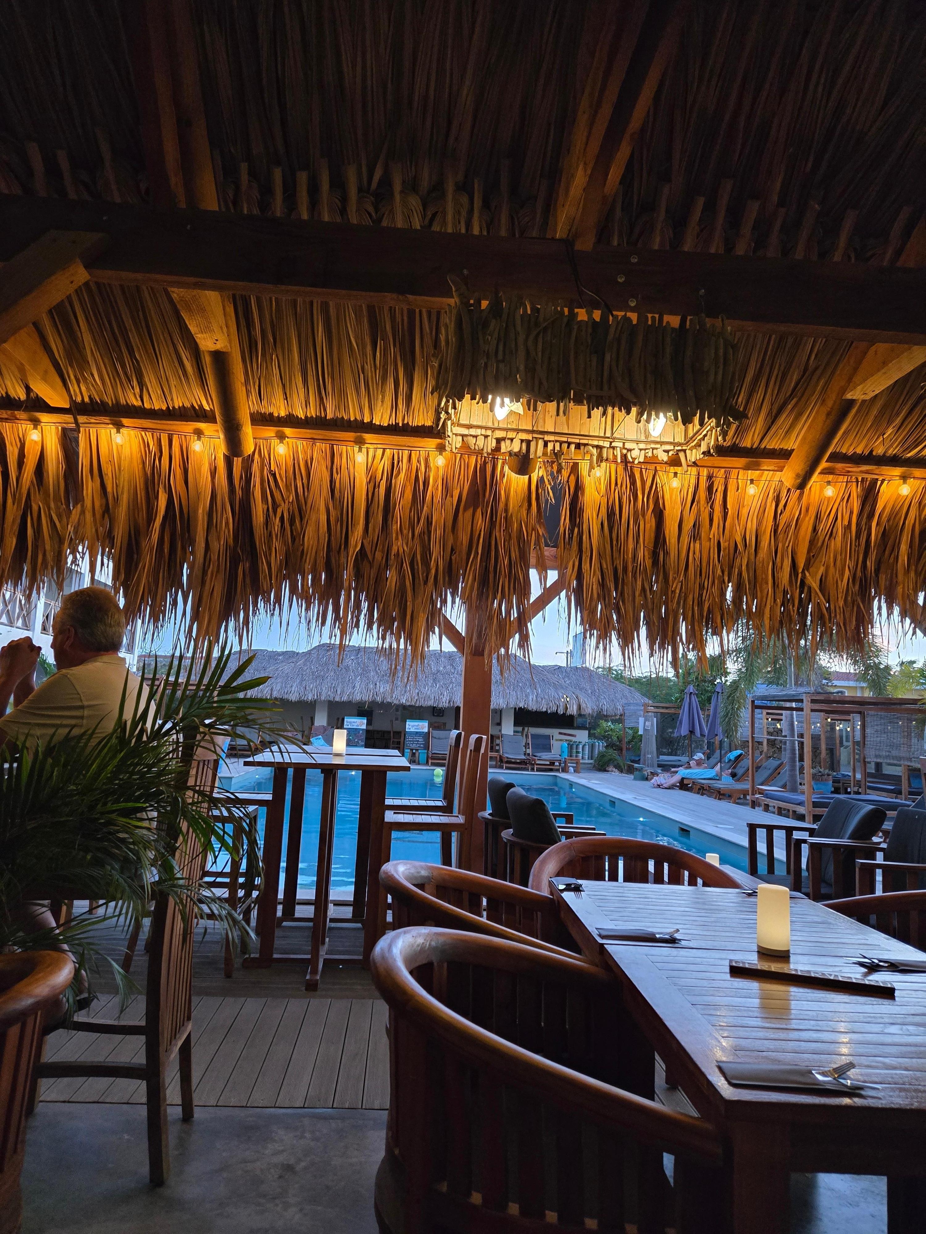 The Bloozz staff was friendly and helpful. The property is beautifully landscaped. A really nice feature is the on-site lockers and wash station for snorkel/dive equipment, all of which was included as part of the rental. Their pool is nice with plenty of chairs, partially shaded. While we utilized the well-equipped kitchen for the majority of our meals,, the house restaurant's pizza was tasty! Overall, we had a fabulous time. Bloozz is a casual venue, which met our expectations nicely.