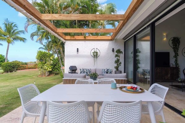 Denna villa ligger vid vattnet i La Romana. La Romanas hamn och Casa de Campo-marinan kan vara värda att kolla in om du har aktiviteter på programmet, och den som föredrar att uppleva områdets vackra natur kan utforska Bayahibes strand och Playa Dominicus. Passa på att utforska området med vattenaktiviteter som sportdykning. Gå till vår reseguide för La Romana