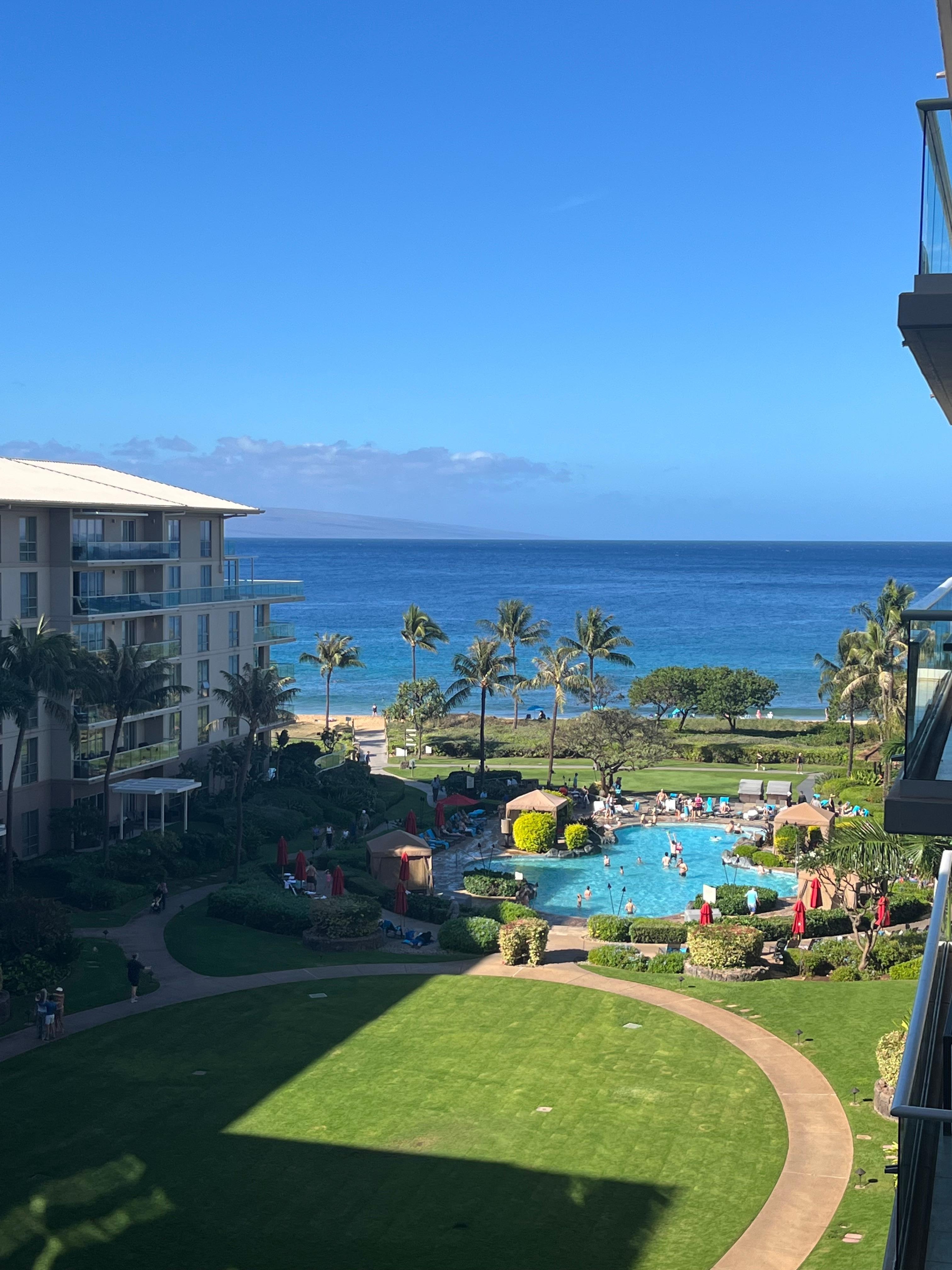 This spacious ocean-view studio provides awe-inspiring views of the Pacific Ocean and Maui's neighbor island Lanai from its prime 6th-floor vantage point nestled in the Hokulani interior courtyard.