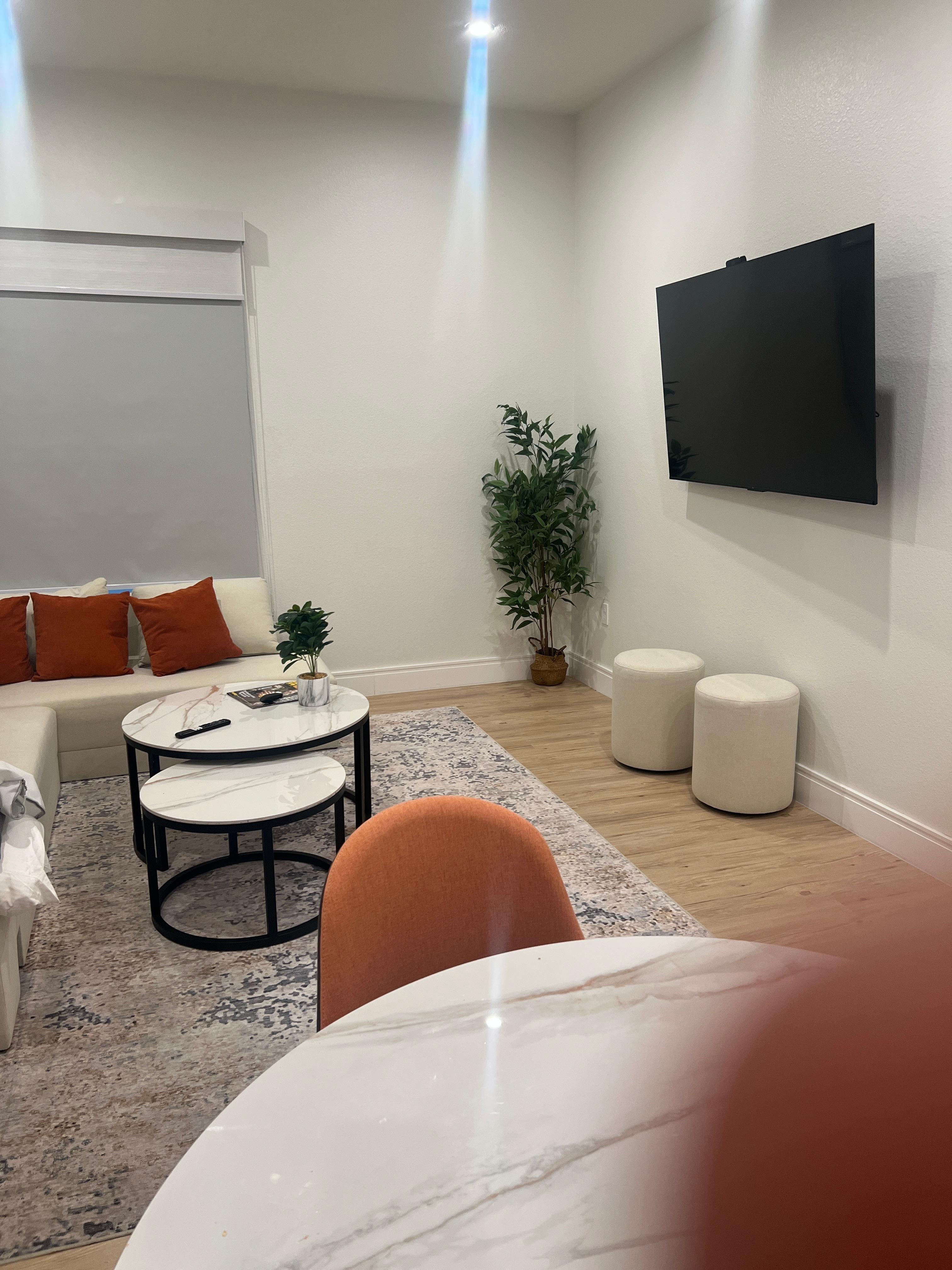 Really great property and an excellent value for the price. Overall, we had a great experience and would definitely stay again. Just a couple things to be aware of— the blackout curtains in the bedroom don’t fully block out the light, so the room gets pretty bright in the morning. Also, the walls and doors are a bit thin; the connecting room door doesn’t offer much soundproofing, you can hear people in the hallway through the front door, and noise from the pool area carries into the room as well.