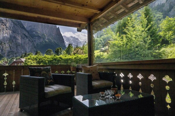 Cozy Apartment in chalet setting with private hot tub and waterfall views