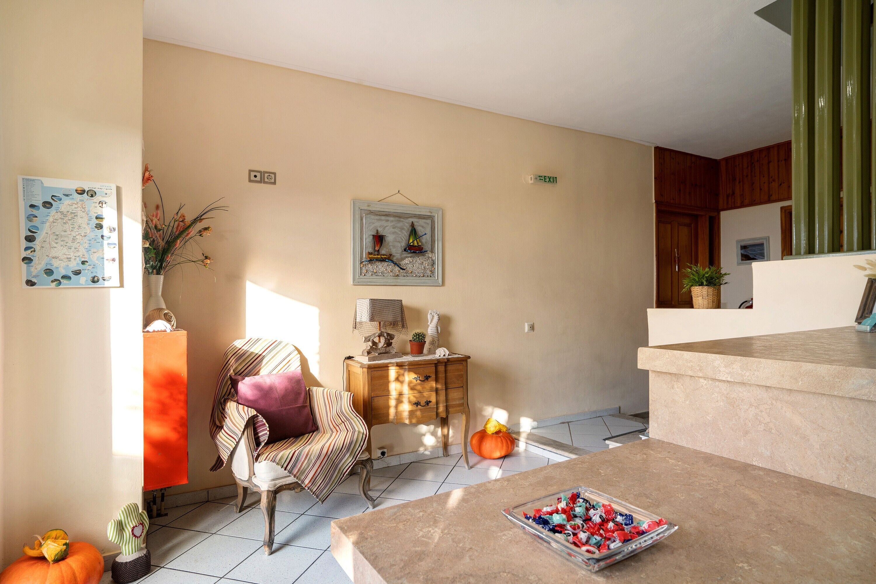 denna semesterbostad ligger i Lefkada. Samling av post-bysantinska ikoner och Angelos Sikelianos museum tillhör de kulturella höjdpunkterna, och bland områdets sevärdheter hittar du Onasisstatyn och Agia Mavra-slottet. Gå till vår reseguide för Lefkada