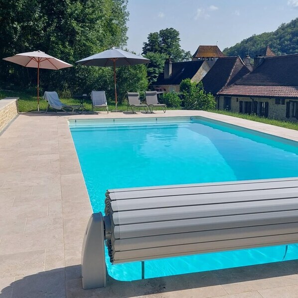 Gård med uthus, uppvärmd pool, avskilt fastighet, naturpark
