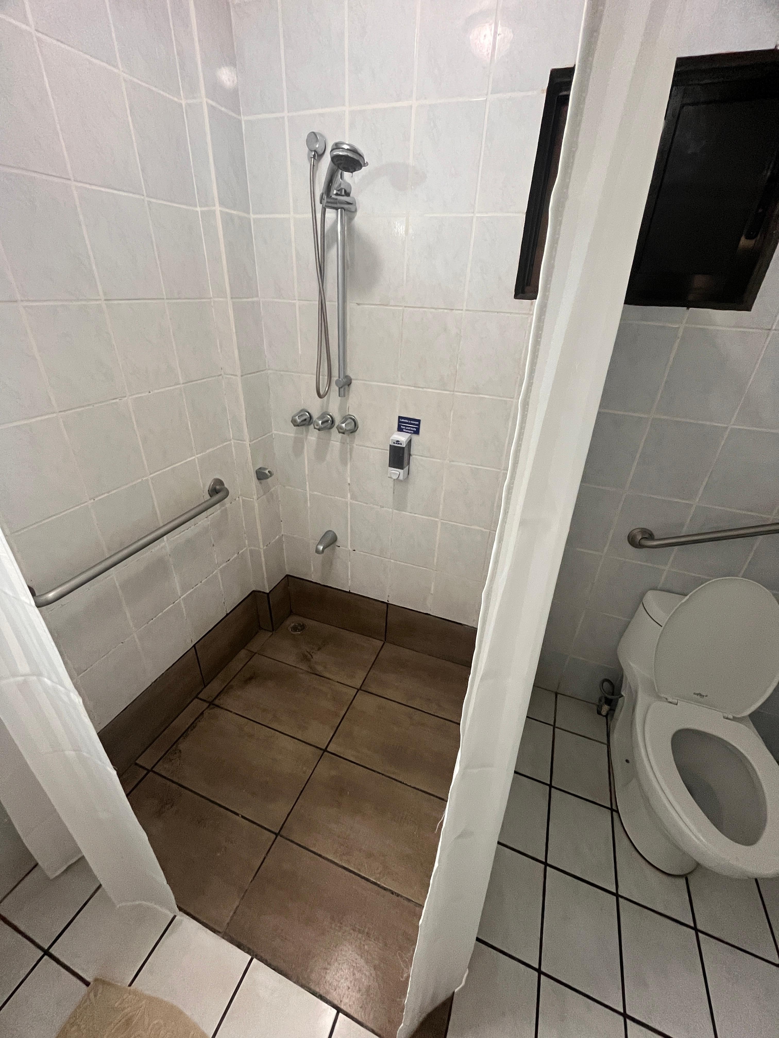 The pool was the only reasonable thing about this place, and the fact that it’s close to the airport. The beds are like rocks and the pillows are the same. The bathroom was very grungy, mould in tiles and really not that clean. The AC unit barely cooled the room and there is no mini fridge. Doors and windows are poorly sealed so you can hear everything outside your room, which was especially annoying because we had a very early flight and wanted to get to sleep at a reasonable time. We could hear literally every person walking and talking outside our room. This place is in disparate need of renovations 😐!!