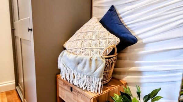 When the hunger kicks in, the kitchen has everything you need to cook up your favourite meals, or alternatively abundant delivery options allow for convenient dining at the stylish 4-seater dining table. This area is equipped with a smart speaker and Spotify subscription for your listening pleasure.