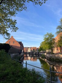 Hotell vid floden med dygnet runt-öppet fitnesscenter och bastu