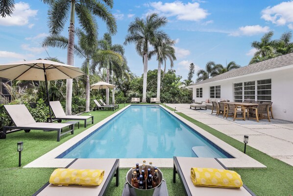 The heart of this house is located on the patio and backyard, where you’ve got your own private getaway. Your experience here is significantly amplified, as you’re able to float in the heated pool or relax in the sun on the chairs day in and day out. With the provided outdoor gas grill, a poolside barbecue for the entire family would be the perfect meal.