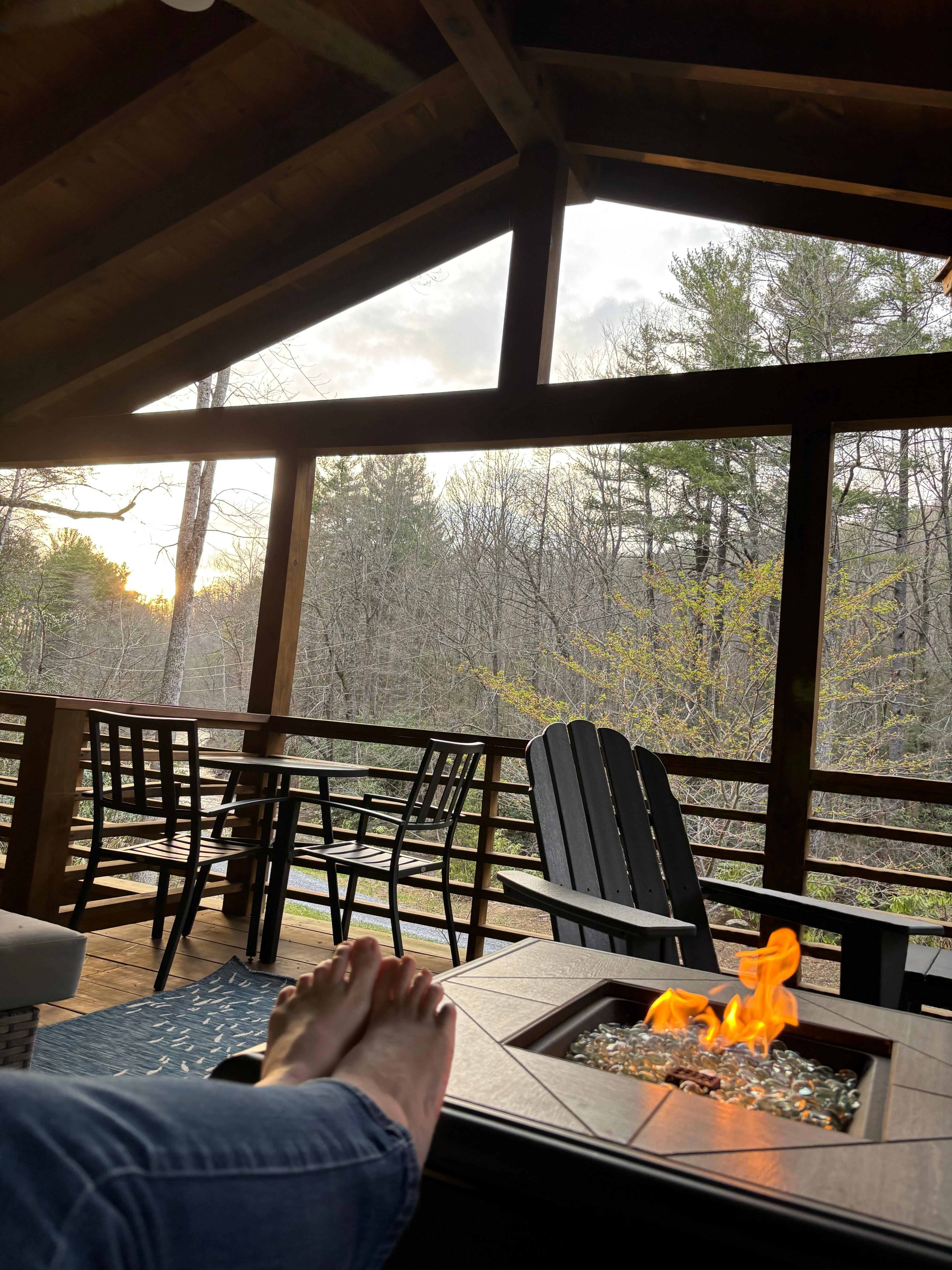 Very private, 7 person Hot tub, fire pit, outdoor living room with fire table, gas grill, river 100 ft from front door, 2.5 mile fly fishing trail across the river from cabin, minutes to hiking Appalachian Trail, custom beds with brand new mattresses on all beds, fully remodeled and super clean! Master bedroom w/ king bed, 2nd bedroom w/ 2 twin beds, 3rd bedroom with 2 queen beds, 3 full baths.
