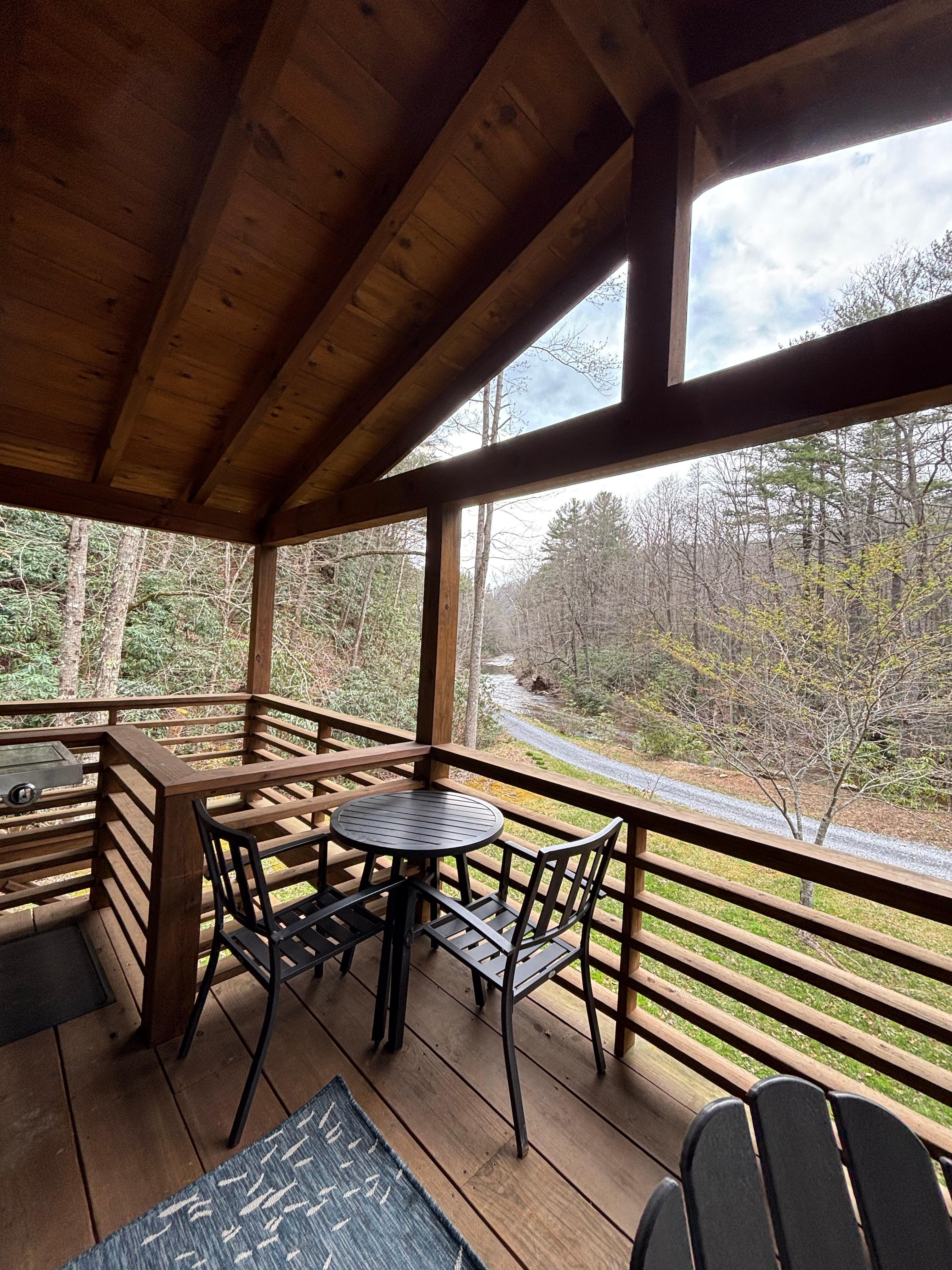Relax by the beautiful blue-ribbon trout stream and let the sounds of the rolling water and breeze through the trees melt away your cares, reconnect with nature by walking along the forested fly fishing trail that borders thousands of acres of national forest. Come back and rejuvenate in the 7-person hot tub, sway in the porch swing, sit on the outdoor couch by the fire table with a glass of wine, and roast marshmallows by the campfire. The RiverHouse has it all, secluded and surrounded by nature that begs for you to adventure out. The home has primo finishes including bark siding, a timber frame porch overlooking the river, handmade beds, fully reclining leather couches, solid surface countertops, a fully stocked kitchen, a campfire, swings, a riverside patio, and a hot tub. Come make your memories with your special ones! Close proximity to the Appalachian Trail, VA Creeper trail, Mount Rogers, Grayson Highlands State Park, Hungry Mother State Park, and many other hiking and outdoor areas.
