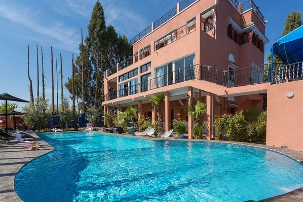 - Stor privat park med 7 hektar blommor, 21m x 11m ljudpool - Skuggat poolhus med avkopplingssalong. Panoramaterrass med utsikt över Atlas. 3 hästar Quad, Mountain bike.