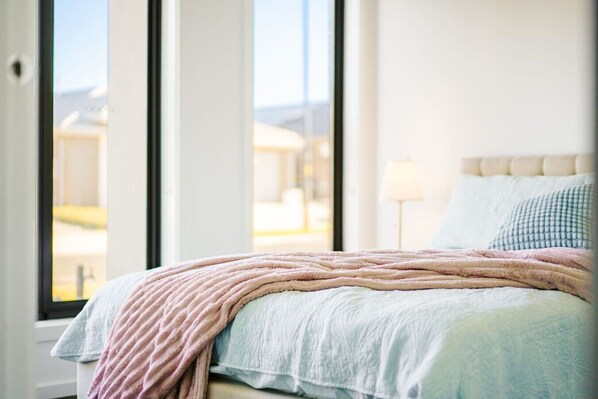 Experience modern comfort at this beautifully designed 3-bedroom retreat. Thoughtfully created for relaxation and ease, the home features spacious living areas, a fully equipped kitchen, two modern bathrooms (including one with accessible features like grab rails), and bright, cozy bedrooms.Enjoy a short stroll to Opalia Plaza or scenic drives to Cobbledick`s Ford Reserve and Eynesbury Golf Course.