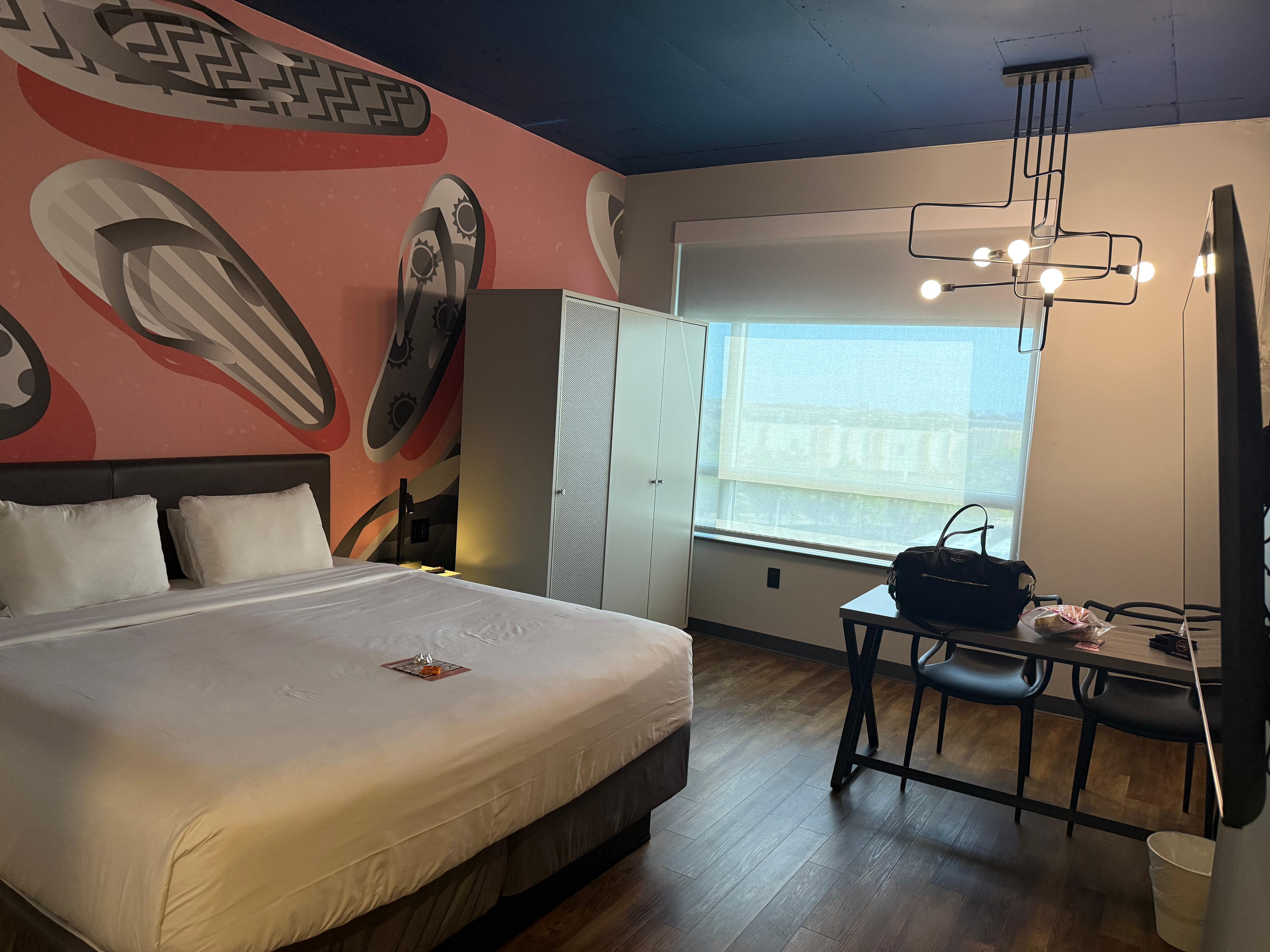 Wasn’t my favorite place. Conveniently located near the airport. It is loud, they leave ear plugs for you on the bed. Found pubic hair on the side of the bed, and the bathroom floor is some kind of foam flooring that in front of the toilet is raised and smells like urine. Didn’t notice the smell the first day, but the next morning when the air freshener wore off, you could definitely smell it.