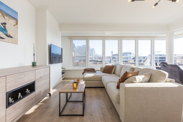Denna ljusa och rymliga hörnlägenhet på andra våningen är idealiskt belägen precis runt hörnet från Middelkerkes strandpromenad, ovanför den bekväma Rapallo-affären. Med två sovrum, ett med dubbelsäng och det andra med dubbelsäng plus en våningssäng, rymmer den bekvämt familjer eller grupper på upp till 6 gäster. Det soliga vardagsrummet erbjuder utsikt över inlandet och en sidoutsikt över havet, vilket skapar en avkopplande och luftig atmosfär. Det öppna köket är perfekt för att laga mat tillsammans, och badrummet har en dusch, med en separat toalett för extra avskildhet. En tvättmaskin och torktumlare finns i ett av sovrummen för din bekvämlighet. Med Wi-Fi ingår är denna lägenhet en utmärkt bas för att utforska kusten, njuta av stranden eller promenera på strandpromenaden. Parkering ingår inte, och gästerna ombeds vänligen att ta med egna lakan och handdukar. Oavsett om du är här för en weekendresa eller en längre vistelse vid havet, erbjuder denna lägenhet komfort, utrymme och ett fantastiskt läge.
