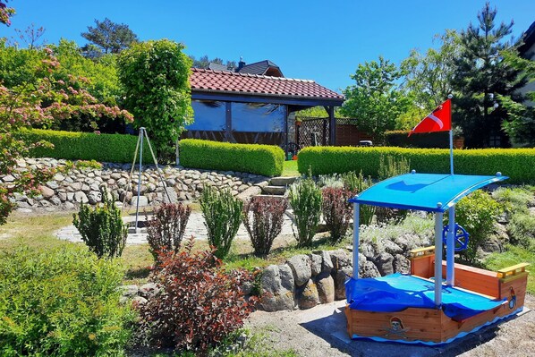 torktumlare, luftkonditionering, trädgård(delad med den ägaren och andra gäster), grill, parkering, sandlåda, lekplats, cyklar tillgängliga, trappgrind