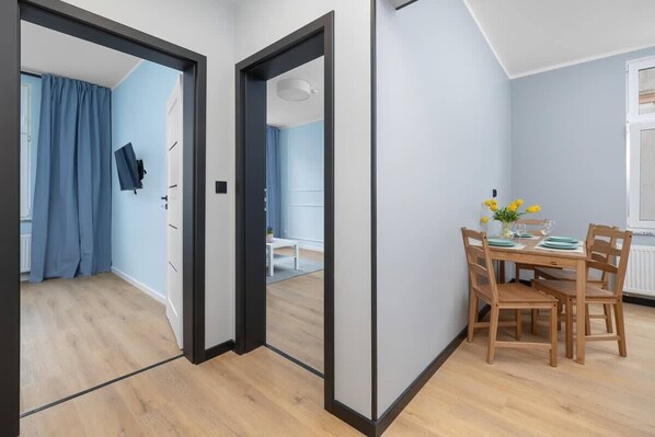 Self check-in and check-out. Located on Światowida Street in Międzyzdroje. 8-minute walk to the beach. 8-minute walk to the pier. 7-minute walk to the Międzyzdroje Oceanarium. Apartment for 4 people. Area: 46 m². 2 bedrooms. Parking. Fully equipped kitchen. Free toiletries in the bathroom. VAT invoice available upon request.