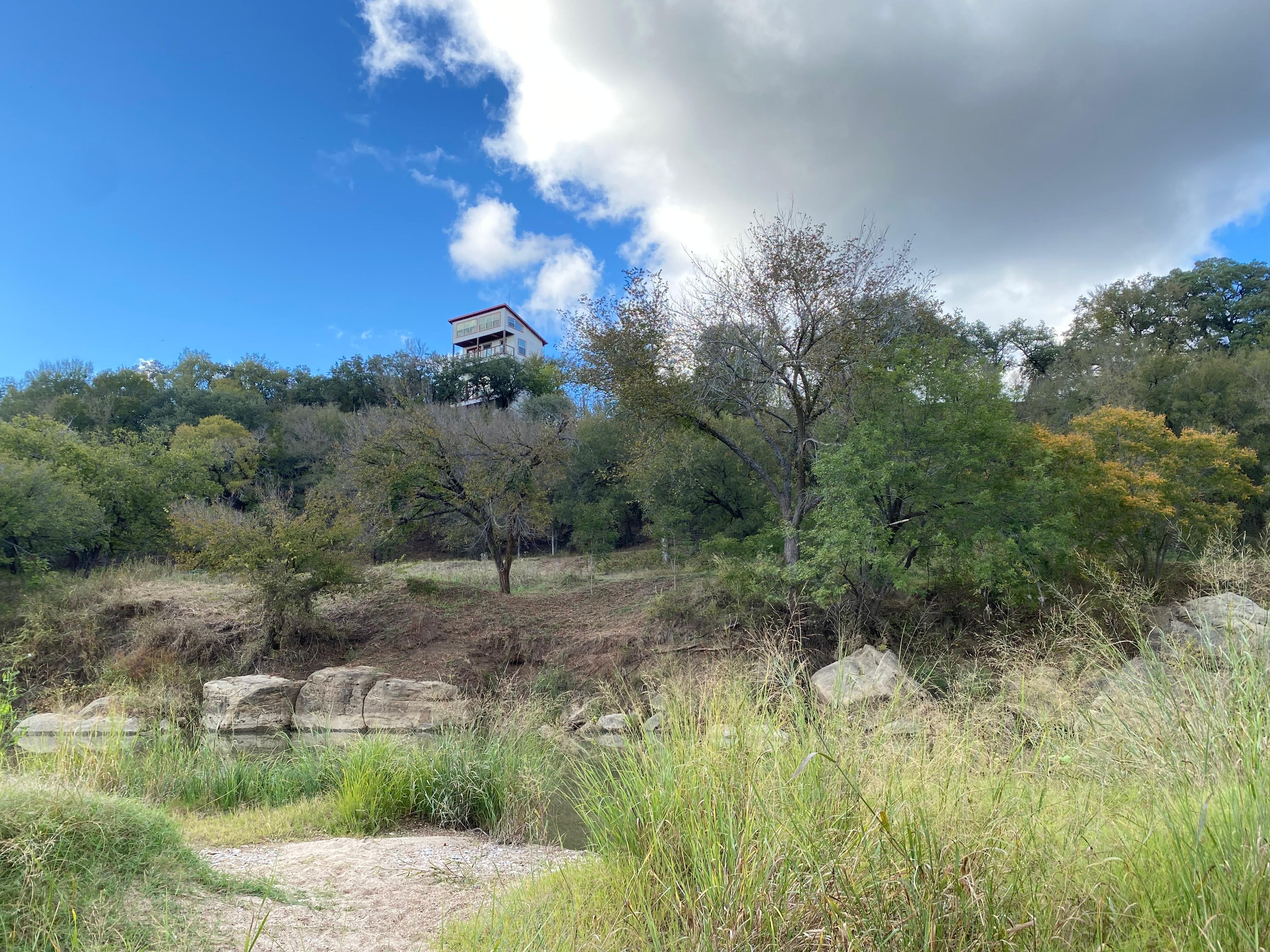 Tillbringa en helg eller mer på en klippa högt över floden Brazos i North Texas Hill Country of Palo Pinto County. En stentrappa skär genom jätte- stenblock ner till floden och flera fiskeplatser, plus kajak- och kanotutsättningspunkter. Njut av en stor grill och utsikt över solnedgången och floden från en täckt paviljong. Det finns en uppvärmd pool och badtunna med utsikt över floden, bland gamla levande ekar. Du kan också njuta av en reglering hästsko pit och primitiv stuga som rymmer två, belägen i norra betesmarken. Bara 90 minuter från North Dallas och mindre än en timme till Fort Worth, men du känner att du är tusen mil bort. Välkommen till Brazos de Dios.