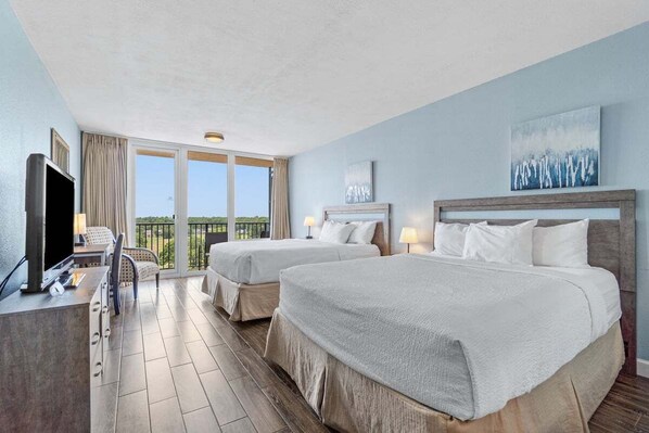 Studio with private balcony at the popular Bayside Resort located in Miramar Beach. Kitchenette, full bathroom with shower/tub combo, 2 queen beds