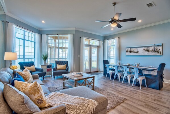 Upplev denna vackert uppdaterade semesterfastighet med vidsträckt utsikt över Choctawhatchee Bay medan du njuter av lyxkomforten i ett välutrustat hem. Med en golfvagn med fyra passagerare och en golfvagn med sex passagerare på din fritid hittar du dig själv i hjärtat av Sandestin resortliv!