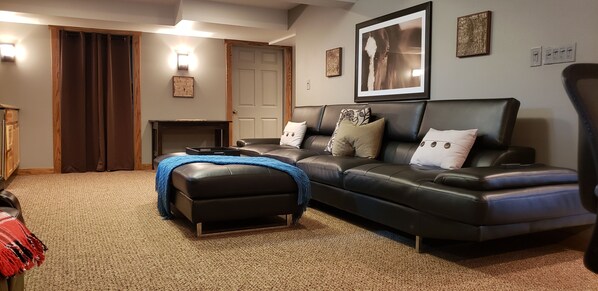 Detta är en lägre nivå lägenhet och vår familj upptar den övre nivån. Den har fullständig integritet med egen ingång och uteplats.