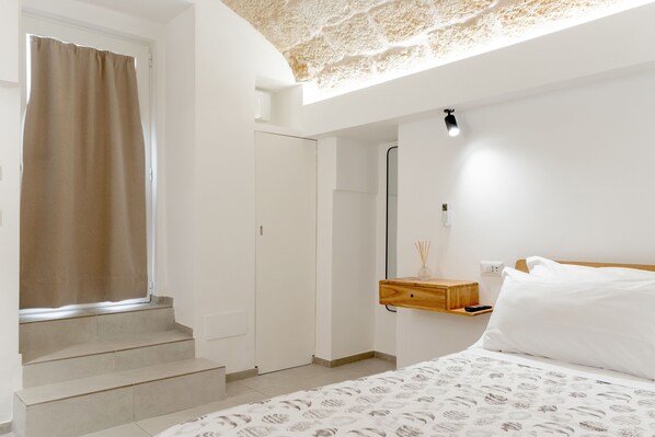Vico Mimì is a characteristic house located in Vico Castelfidardo 49, in a street closed to traffic in the center of Monopoli. It is the ideal solution for those who want to experience a genuine stay, between tradition, silence and timeless views. This is a studio apartment on the ground floor, typical of the Murattiana area, designed to offer comfort and functionality in an intimate and welcoming environment, perfect for couples or travelers who love the charm of traditional homes. The house has a cozy and quiet bedroom, a full and functional bathroom and a kitchenette with induction stove, mini fridge and sink. The spaces are well organized and designed to ensure convenience and relaxation. The rooms also have an essential, modern and well-kept style. The strong point of Vico Mimì is its ideal location: in the city center, a few steps from Piazza Vittorio Emanuele, a few minutes walk from the sea and close to restaurants, bars, shops and main points of interest. A perfect base for exploring Monopoly on foot. Vico Mimì is ideal for those who love historic alleys, typical houses and staying in an authentic and lived area of the city center. The house is equipped with high speed internet connection, the possibility of a shuttle service with a paid Golf Cart and luggage storage service in our office located in Via Vittorio Veneto 10, a few minutes from the apartment.