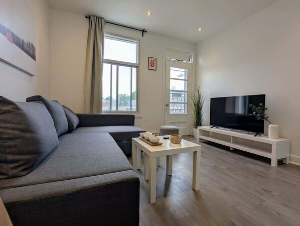 Step into a modern, thoughtfully designed home base in the heart of Hochelaga. This stylish 1-bedroom apartment is perfect for solo travelers, couples, or small families seeking a peaceful and comfortable stay.