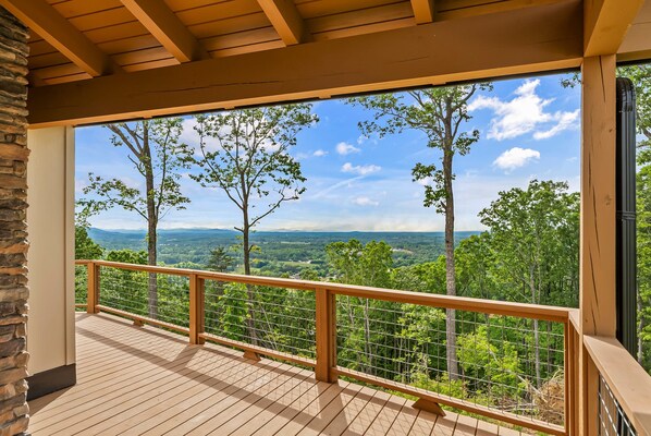 Mountain Jam offers panoramic views of both the Blue Ridge and South Mountains, yet only 10 minutes from I-40. Sunrises and sunsets can be appreciated from this lovely new home. The great room with open loft is perfect for anything from yoga to picking and grinning! Located conveniently between Charlotte and Asheville, we are the perfect spot for day tripping or any event near Morganton! We can sleep 6 adults comfortly & maybe 8 if you have small kids. Views, decks, cozy fires, & hot tub await!