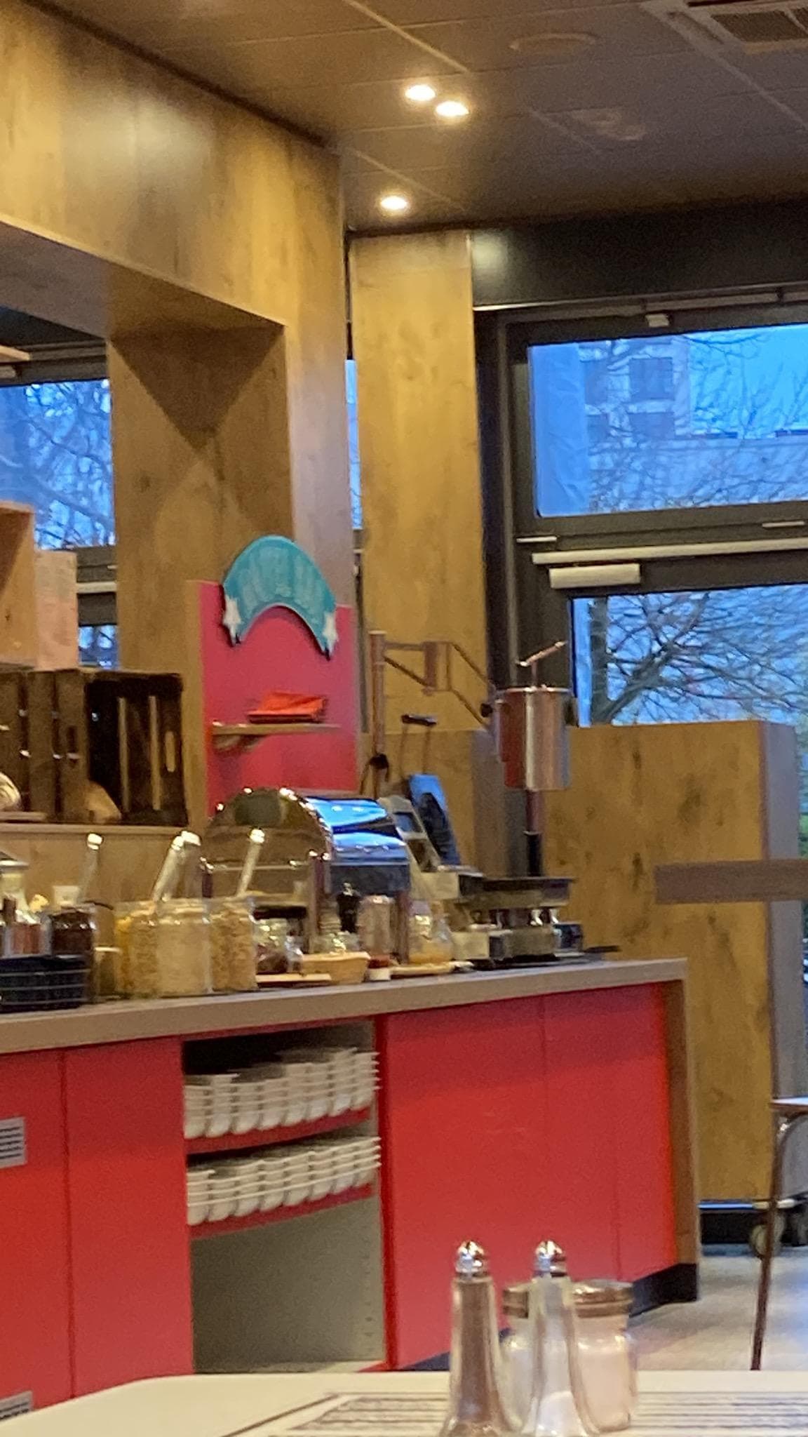 Nice budget hotel with really friendly staff. Dull neighborhood, really nothing in terms of restaurants or cafés.