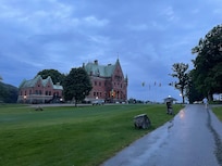 Slott på stranden med golfbana och gratis frukost