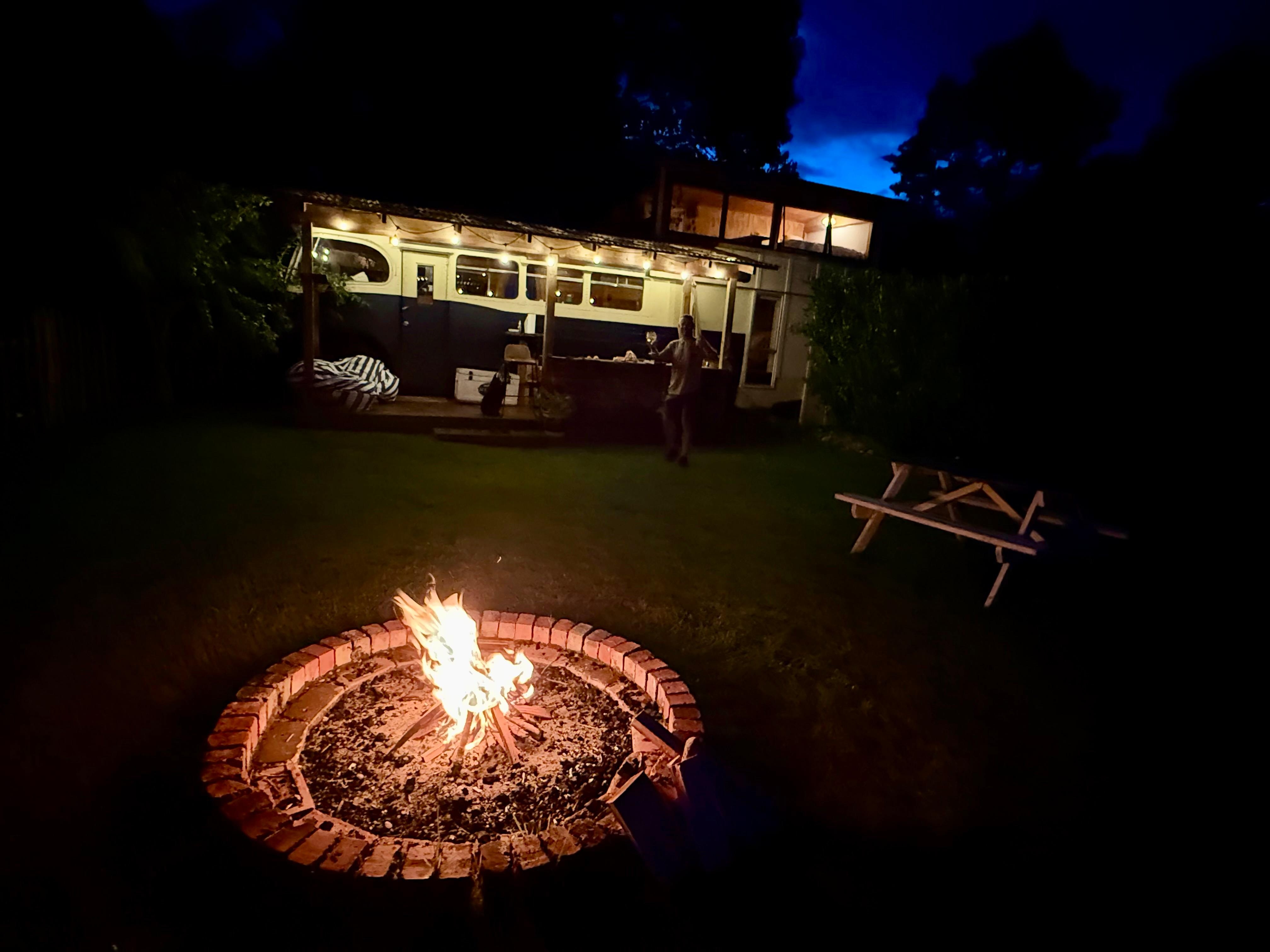 The area with the bus in is surrounded by a rustic fence and bamboo one on the side with the road for extra privacy. You have your own shower and composting toilet in ablution block connected to bus by covered area. Cooking facilities are designed for outside, gas 2 burner and BBQ.