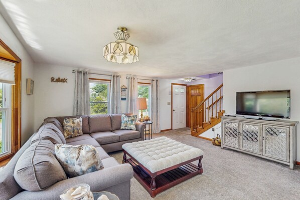 With comfortable beds in 4 spacious bedrooms and a sofa bed for extra guests, everyone is sure to have a restful night's sleep. Step outside to the expansive deck to sip your morning coffee, enjoy a barbecue, or simply soak in the peaceful surroundings.
