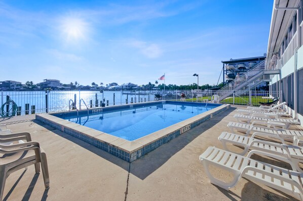 Amenities at Driftwood Landing include a community heated pool, reserved boat slip and fish cleaning station. In the common area, credit card operated washer/dryer, ice maker and BBQ area.
