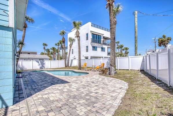 The One Piece is a fabulous duplex with two, two-bedroom, one-bath poolside units (4 bedrooms, 2 baths total). Completely renovated and updated in 2023! The unbeatable location is right in the heart of our ocean-side city, New Smyrna Beach. Walk 2 minutes to Flagler Avenue featuring shops, boutiques, art galleries, one-of-a-kind dining experiences, and the area's nightlife! The beach is only 450ft away so you will be dipping your toes in the refreshing Atlantic ocean in no time! You will love it here!