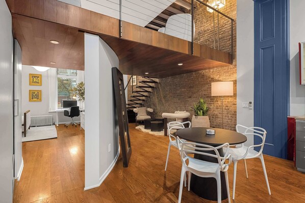 Welcome to Village Art Loft, an exquisite 1-bedroom loft with a private garden nestled in the vibrant heart of Greenwich Village, presented by StayHaus.