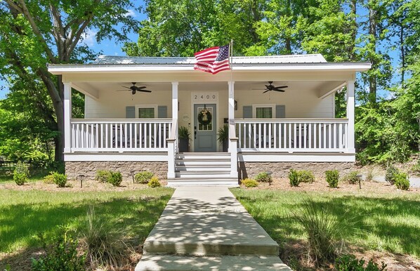 - Classic front porch with rocking chairs — your perfect morning coffee spot