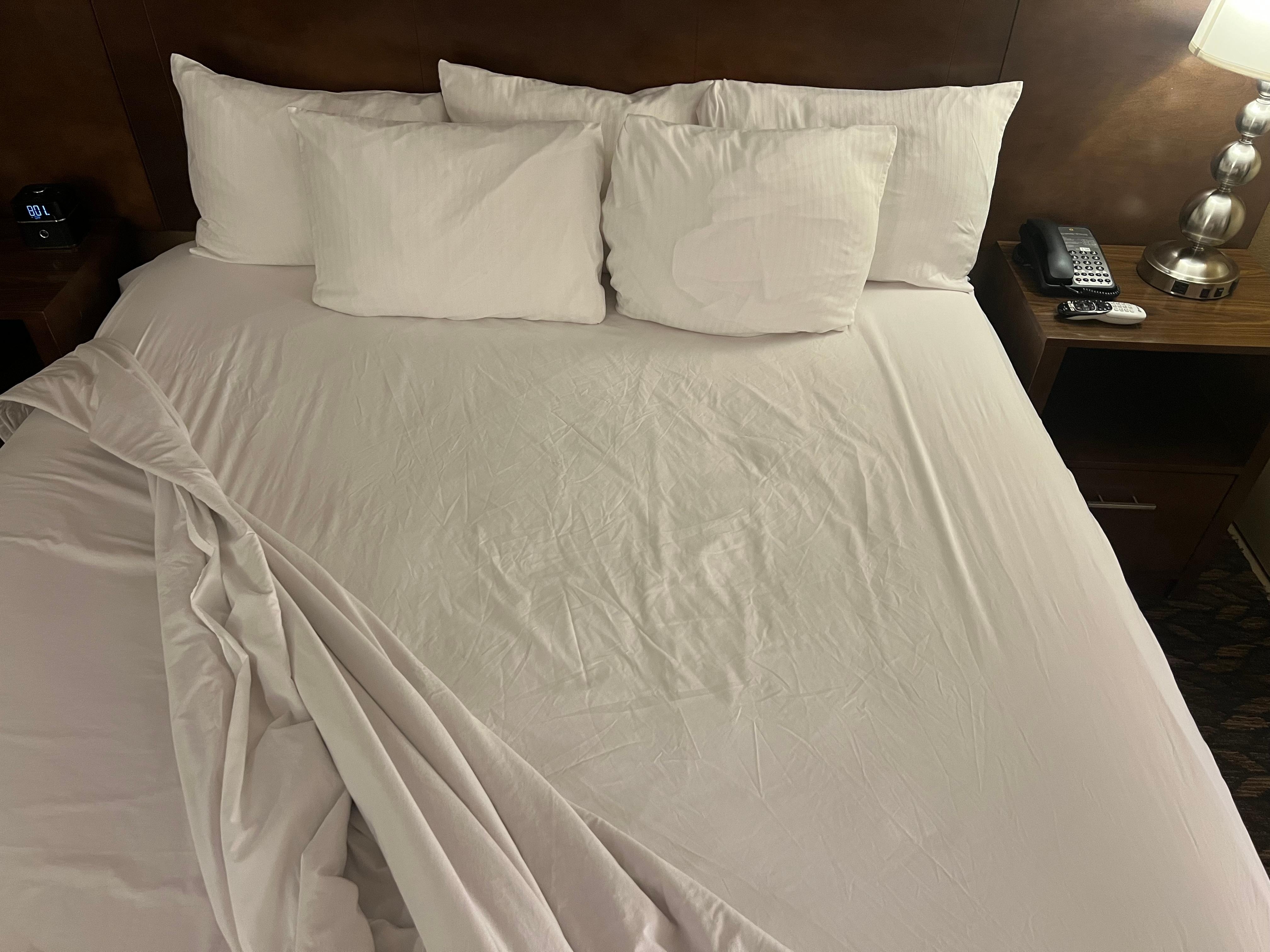 I’m convinced my sheets were never changed. Pulled back the comforter to get in bed and the sheets were wrinkled on just one side of the bed, you could tell they were not clean/ changed. They just made the bed and moved on. I have pics