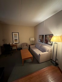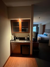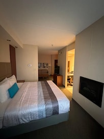 Rooms are very nice decor is tasteful large closet & fireplace. The beds were absolutely amazingly comfortable one of the best. I’ve slept in in a hotel plenty of pillows and different firmness to choose from. The couch was nice and desk is large with an office chair, mini fridge and microwave. The pressure in the shower is absolutely amazing! The welcome treats upon arrival was an excellent touch! The breakfast area remained clean, and the staff came around to wipe up any drips or waffle batter drips from the waffle machine. The tables were very clean. We were also there at 7:30 AM. The Vanhoute coffee machinewas delicious and it had cappuccino at the push of one button.. The breakfast area was quite spacious and clean. Breakfast selection was very good as well. There is also a juice machine, cranberry juice, juice, apple juice, and water at the push-up a button . Didn’t have time to use the pool, but it’s very nice that they have one as well as a workout facility. Location) is good there several options of places to eat at this hotel hotels located directly beside a Boston Pizza, about 30 steps away, which is quite convenient, but we did not have a chance to eat there.. we found the room a bit pricey for the one night we stayed other than that everything was comfortable.